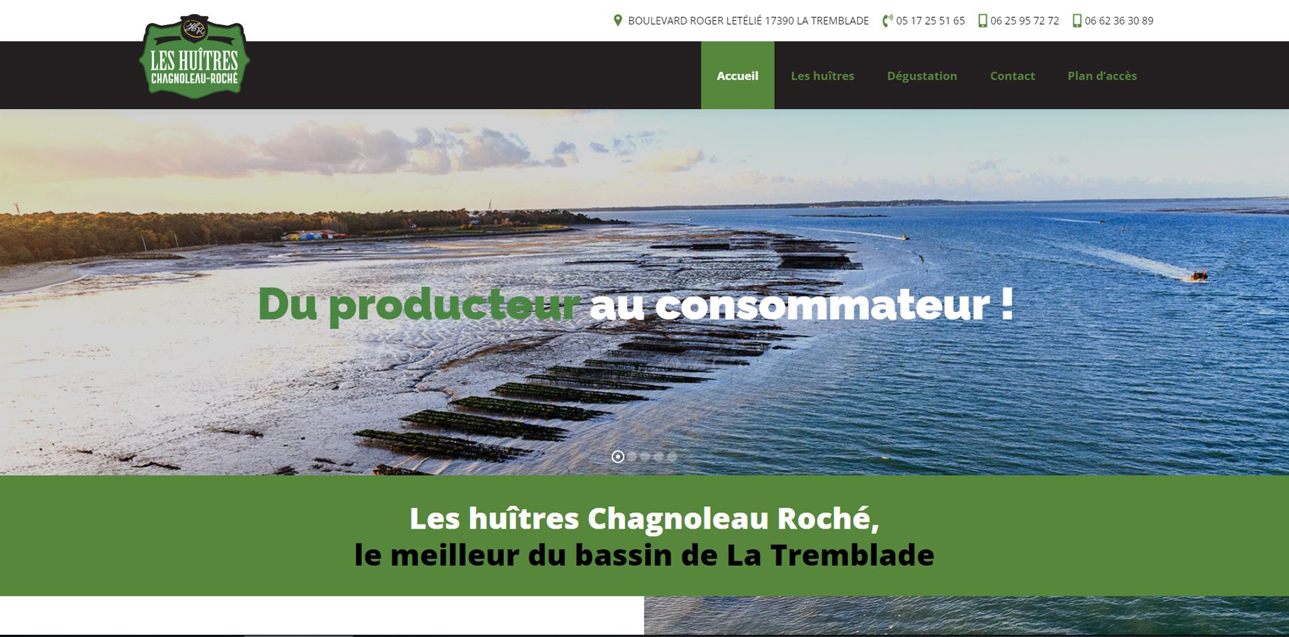Site vitrine LES HUITRES CHAGNOLEAU ROCHE
